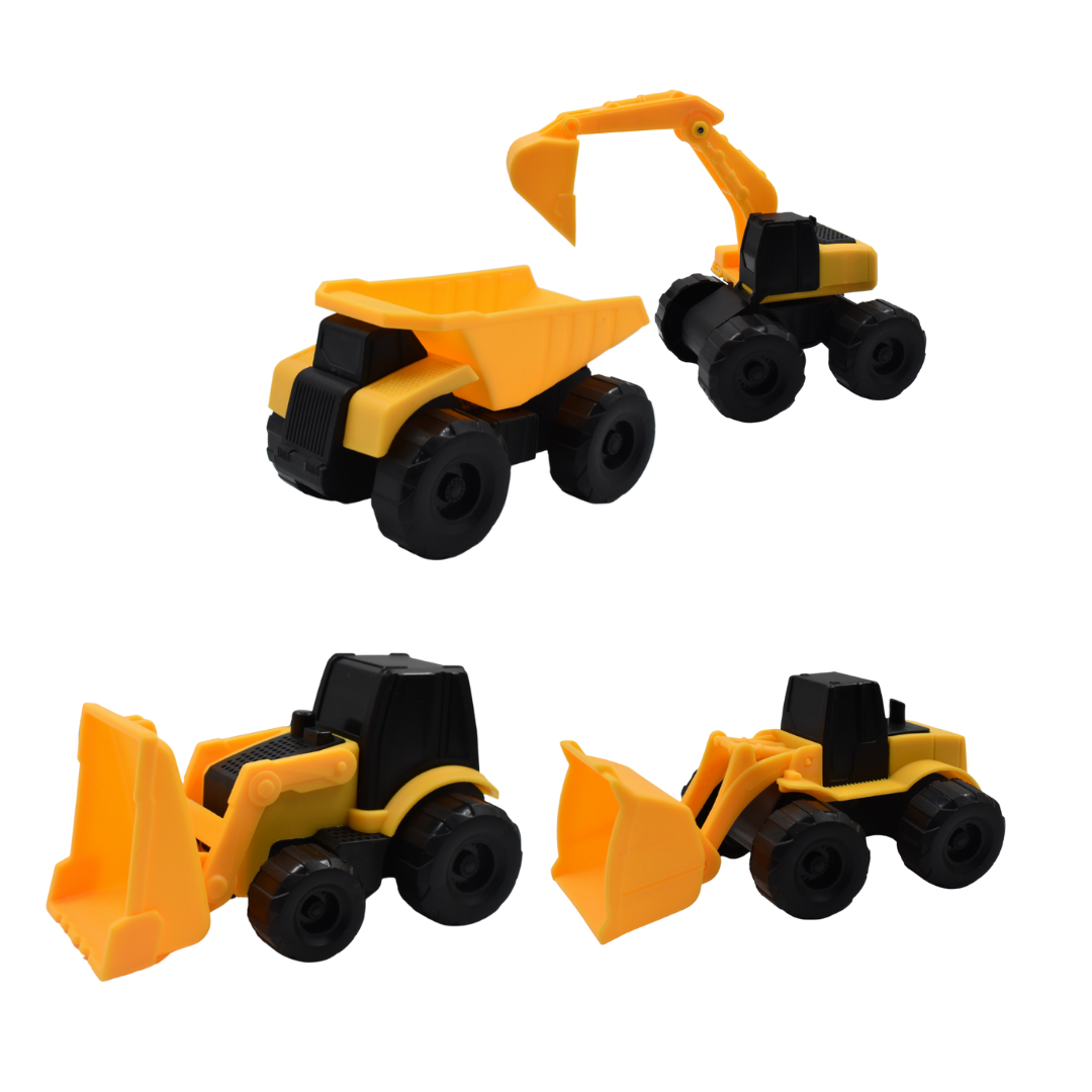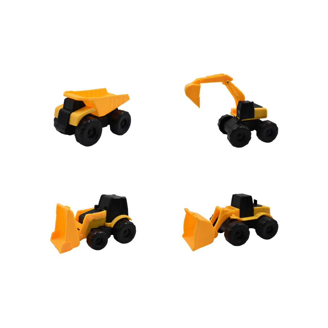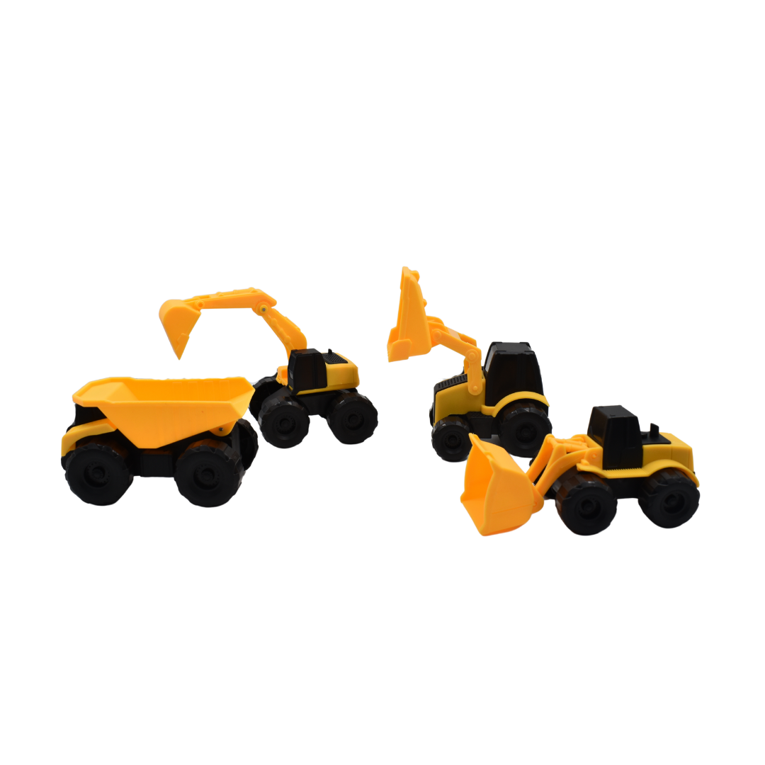 ¡Hacé que la imaginación de los más chicos cobre vida con este increíble set de 4 vehículos de construcción! Diseñado para juegos seguros, creativos y llenos de acción.